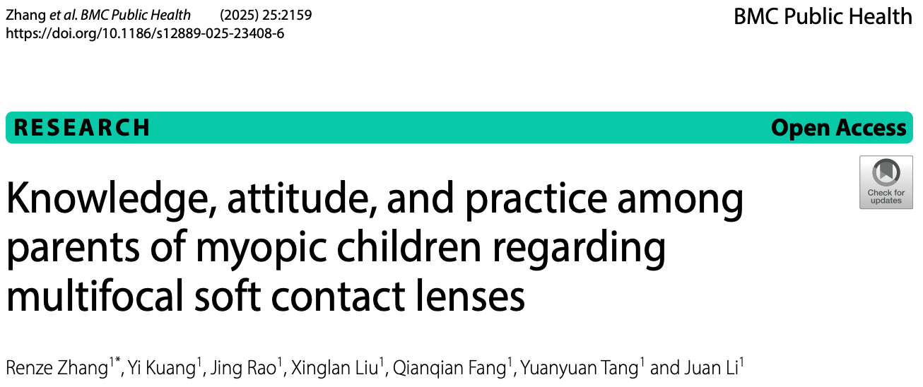 【学文】-165:近视儿童家长对多焦点软性隐形眼镜的知识、态度和实践