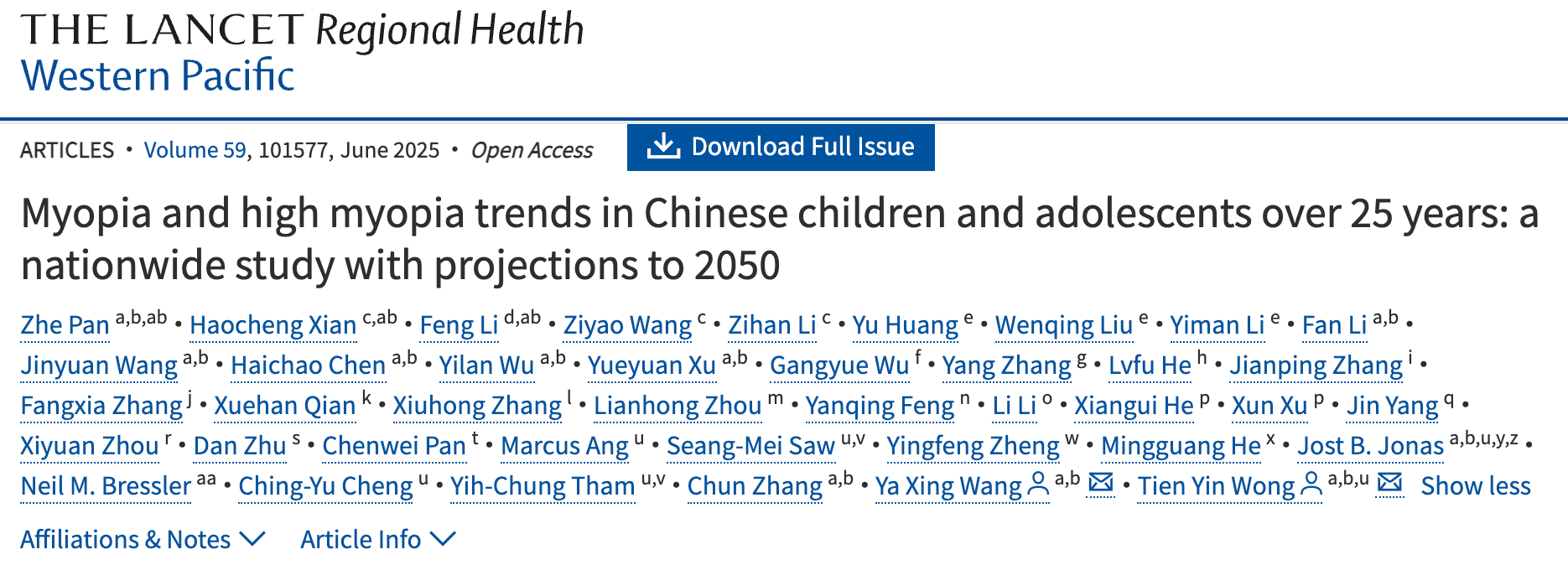 【学文】-167:中国儿童青少年在25年内的近视和高度近视趋势|预测到2050年的全国研究